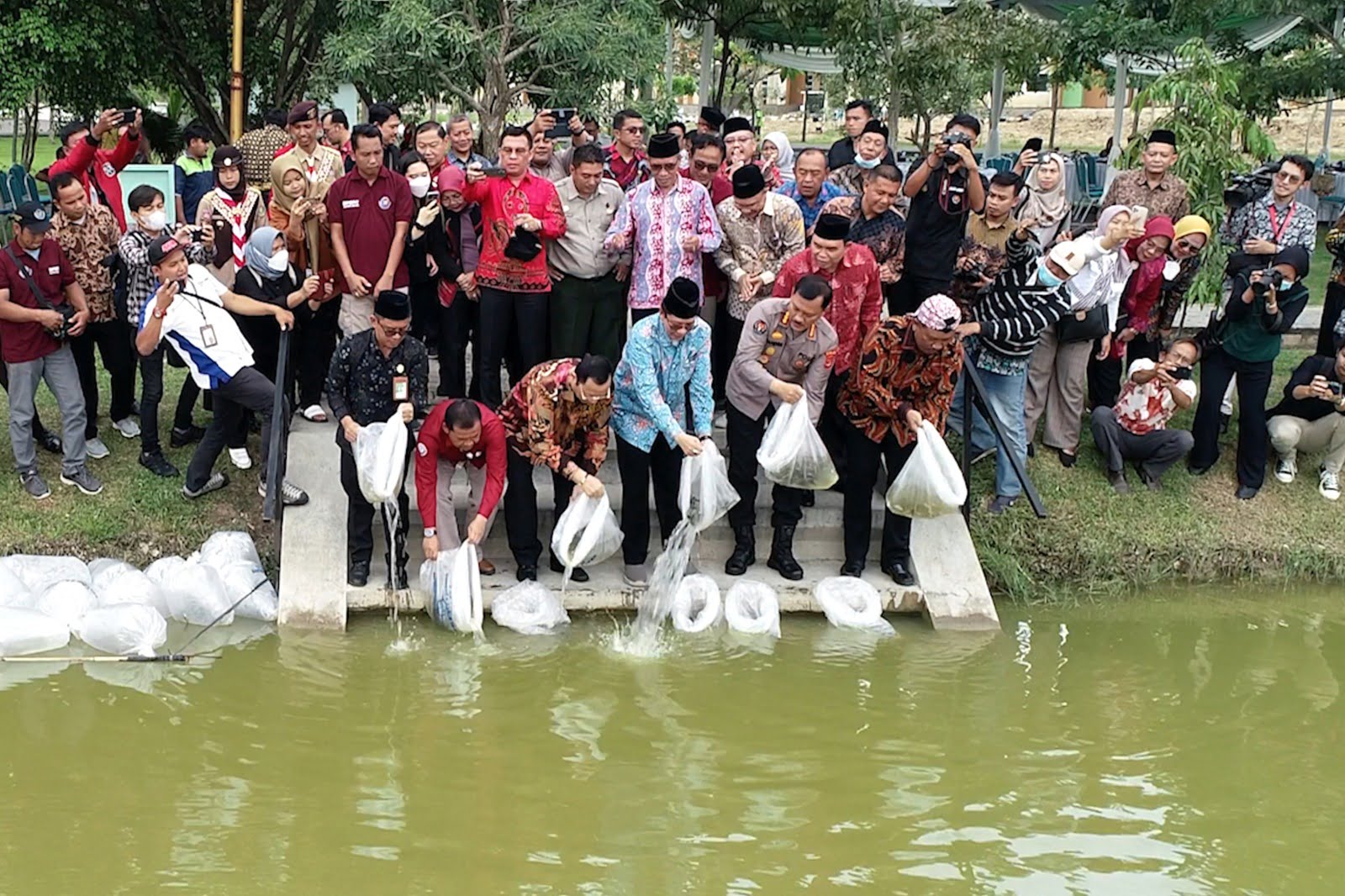 “Salah satu bentuk komitmen tersebut adalah dengan memberikan benih ikan untuk restocking embung-embung, dan juga memberikan bibit lada perdu dan pohon produktif masing-masing sebanyak 500 untuk penghijauan di UIN Raden Intan Lampung,” kata dia.