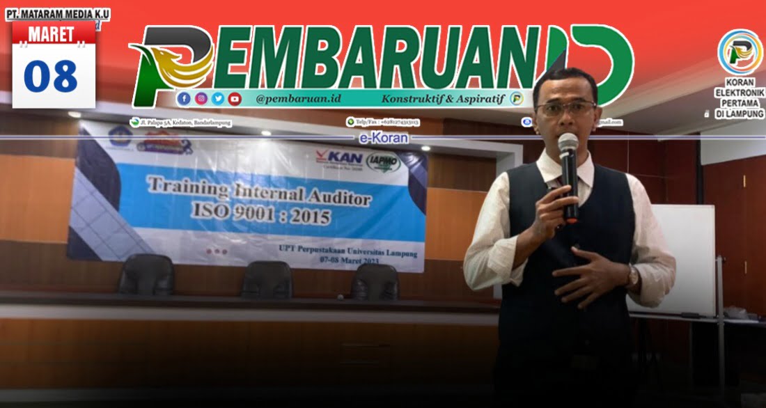psiaceh.or.id/ – Unit Pelaksana Teknis (UPT) Perpustakaan Universitas Lampung (Unila) adakan kegiatan Training Internal Auditor ISO 9001:2015, Selasa dan Rabu (7-8/03/2023) di ruang auditorium lantai 3 Perpustakaan.