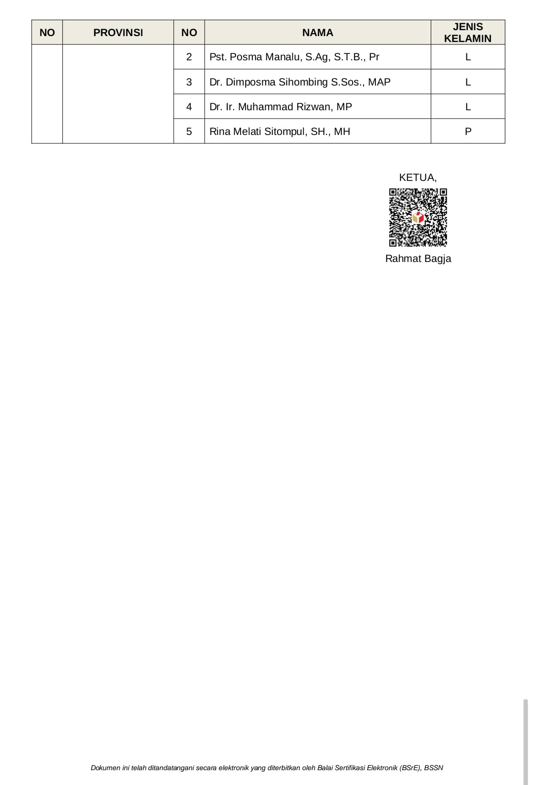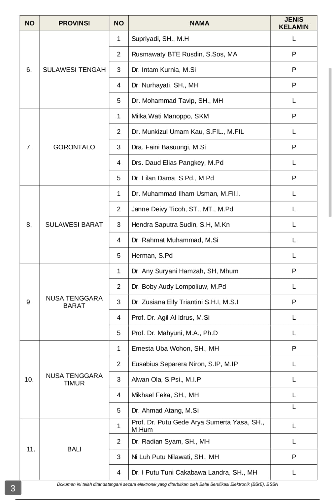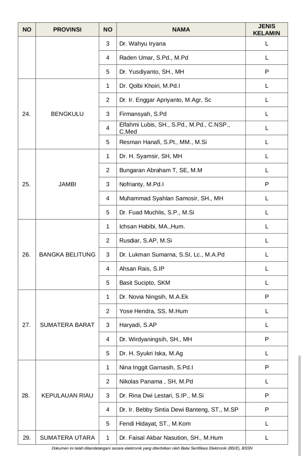 Dalam Pengumuman Nomor 220/KP.01.00/K1/03/2023 tentang Pembentukan Tim Seleksi Calon Anggota Badan Pengawas Pemilu Provinsi di 29 Provinsi periode 2023-2028 itu, terdapat lima nama Timsel Bawaslu Lampung, yakni: