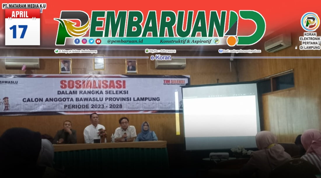 psiaceh.or.id/ – Badan Pengawas Pemilihan Umum (Bawaslu) Provinsi Lampung menyelenggarakan Sosialisasi Seleksi Calon Anggota Bawaslu Provinsi Lampung Periode 2023-2028.