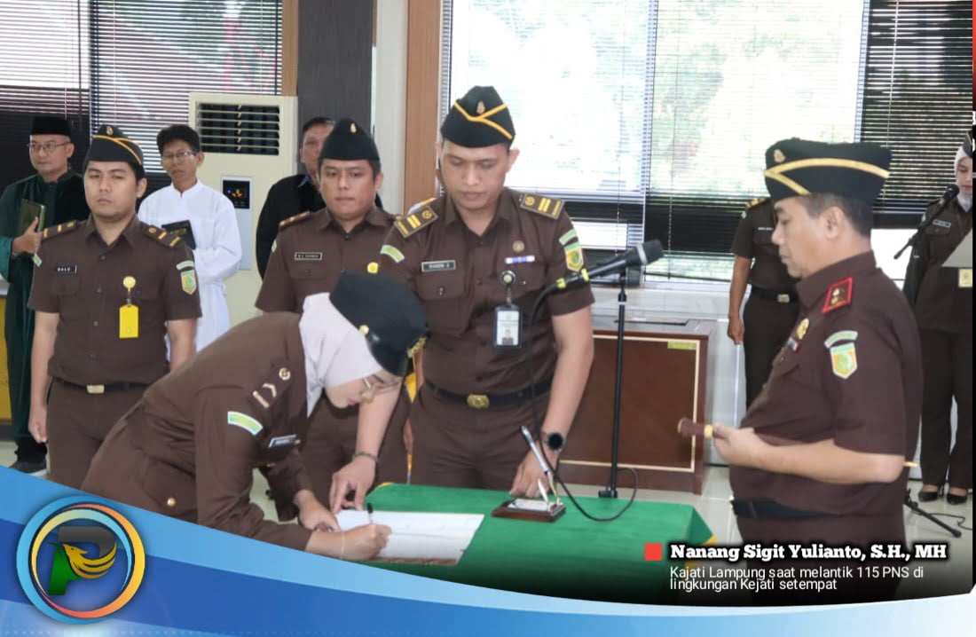 Pelantikan ini berdasarkan Keputusan Jaksa Agung RI tentang pengangkatan status ke-115 CPNS menjadi PNS. Pelantikan dan pengambilan sumpah itu juga turut disaksikan oleh para pejabat utama dilingkungan Kejati Lampung.