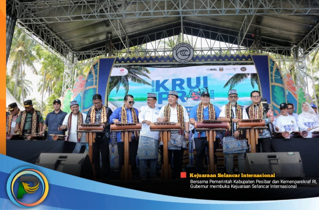 psiaceh.or.id/ – Gubernur Lampung Arinal Djunaidi membuka secara resmi Kejuaraan Surfing Internasional: World Surf League (WSL) Krui Pro QS 5000 2023 di Pantai Tanjung Setia, Pesisir Barat, Senin (12/06/2023).
