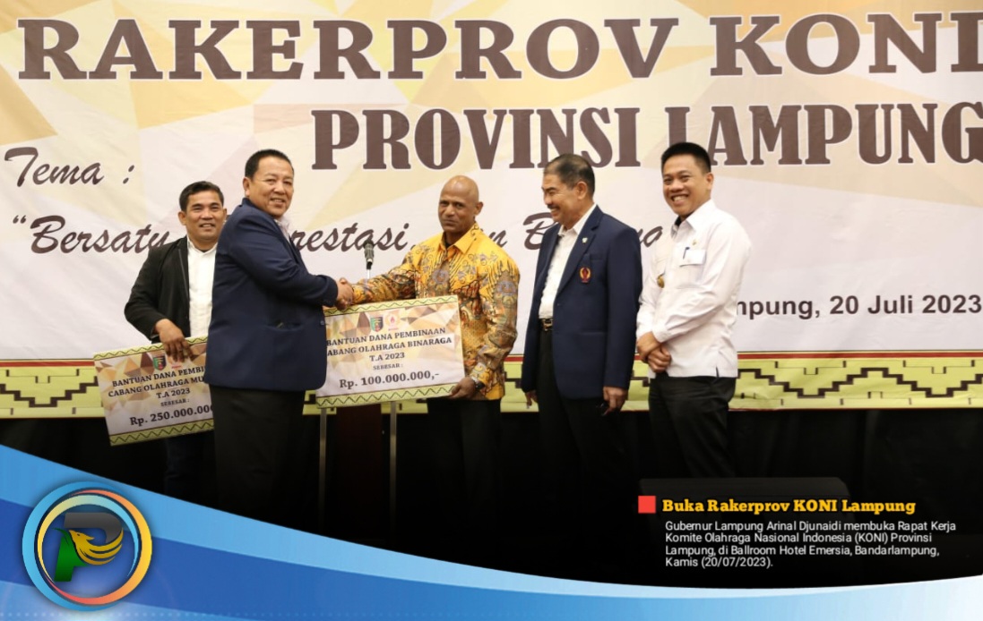 psiaceh.or.id/ – Gubernur Lampung Arinal Djunaidi membuka Rapat Kerja Komite Olahraga Nasional Indonesia (KONI) Provinsi Lampung, di Ballroom Hotel Emersia, Bandarlampung, Kamis (20/07/2023).